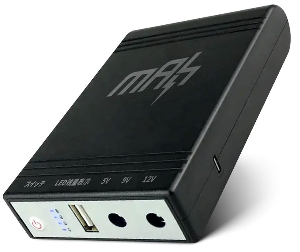 で、DC12V 出力のバッテリーなら、1セル 3.7V を昇圧して DC5V や DC12V を作るのは効率悪そうなので、2セル直列で 7.4V が元(DC5V は降圧、DC12V は昇圧)ならトリップしずらいんじゃないかな、などと勝手に想像して今回の UPS 型モバイルバッテリーにたどり着いた。